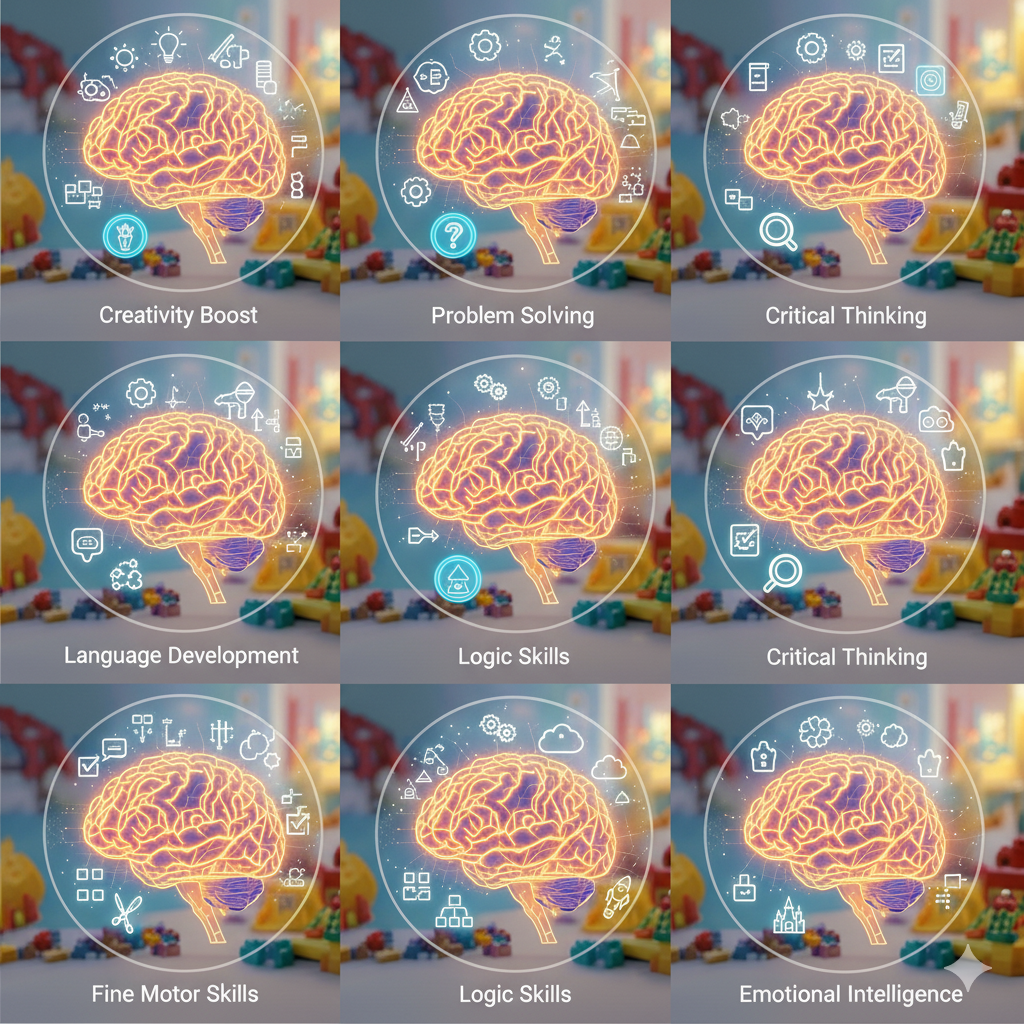 Hands-on play engages both sides of the brain, strengthening focus, memory, and problem-solving skills. When children build and transform, they practice critical thinking and develop the foundation for lifelong learning.